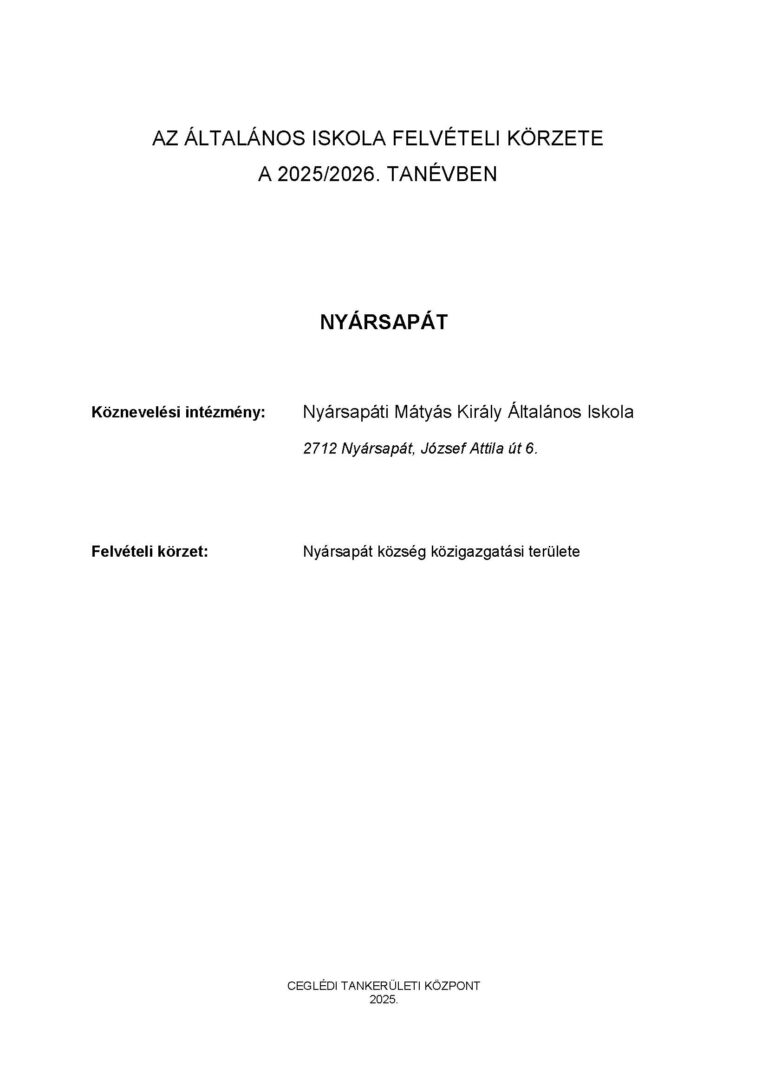 Hirdetmény a 2025/26. tanévre történő általános iskolai beiratkozásról
